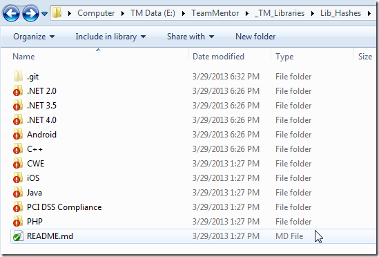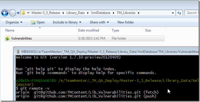 Back in my local VM, I have clone of the target git repository (https://github.com/TMContent/Lib_Hashes):