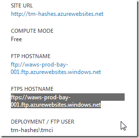 To get the STFP address, I went into Azure’s control panel for the tm-hashes site: