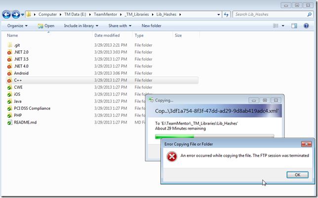 Copied the SFTP address and opened it in local windows explorer (which will require login into the tm-hashes\tmci account):