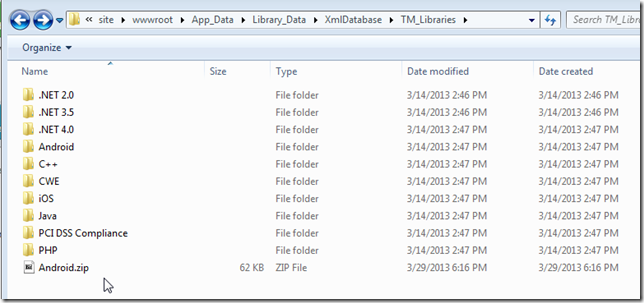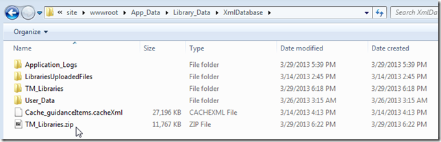 Then into TM’s Library_Data folder, which is located inside the App_Data folder (because this is the main location where this site’s IIS account has ‘write privileges’)