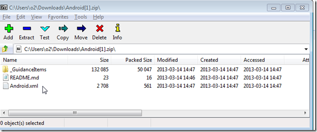 After the script shown above executes, a quick look at the ftp site shows the expected Android.zip in there: