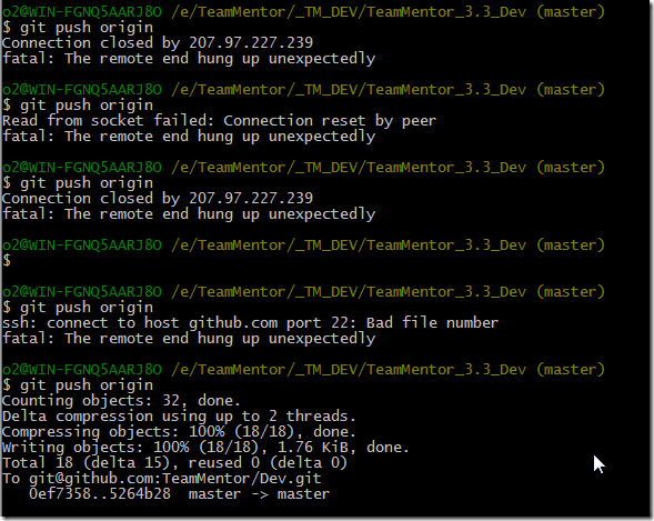 But to me here, a simple/small git push took about 5 minutes of retries: