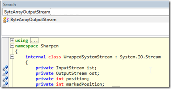 But as you can see, we can’t create an instance of the Sharpen.ByteArrayOutputStream