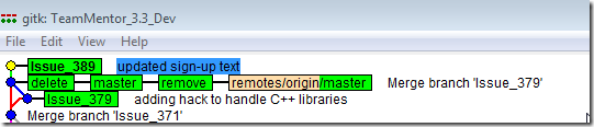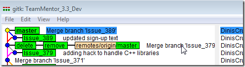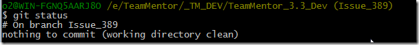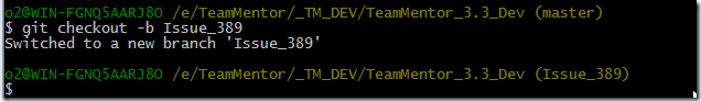 In GitHub, the issue is #389, so on a local clone of the Master repository, we create a branch called Issue_389 (using the –b switch to create it)