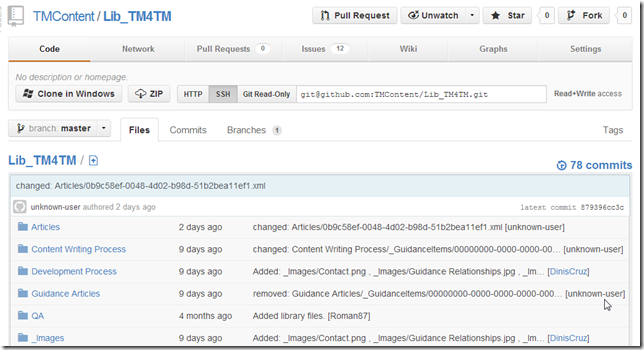 For example, here are the last commits at https://github.com/TMContent/Lib_TM4TM