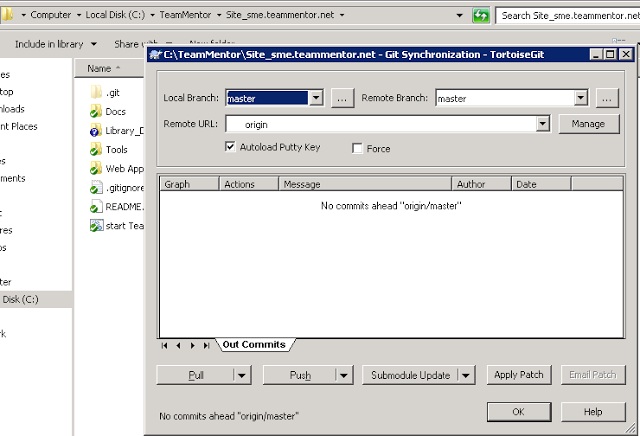 Once TM’s QA (ie. Roman) was happy with the patch, it was time to push it to the first batch of TM production servers (my responsibility was to update the sme.teammentor.net server, while Roman updated the tm4tm.teammentor.net , and the rest will be updated by Michael K + Michael H). Technically I did a pull from those servers :)