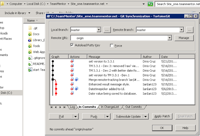And this is what the TeamMentor/Dev Repo looks like after the commit (this is the development clone/fork, which has all the other feature branches)