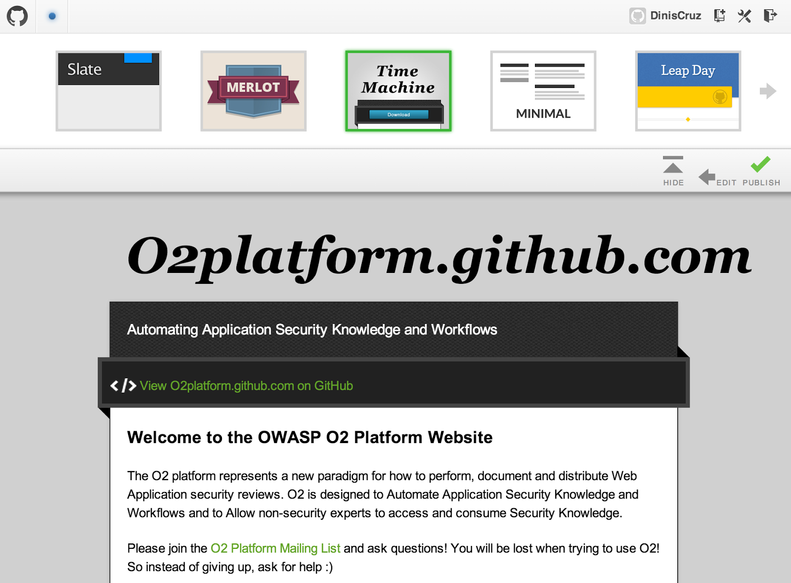 - Creating o2platform.com website using GitHub Pages (with screenshots of all design options)