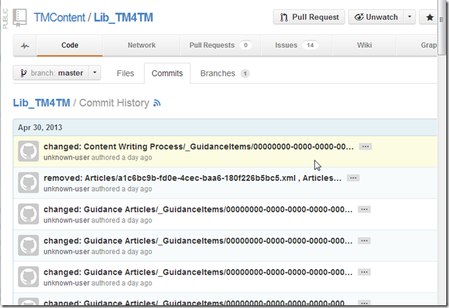 Yesterday, Serge was making some changes on the https://tm-tm4tm.azurewebsites.net server, which where automatically committed (locally) and pushed into the Lib_TM4TM GitHub Repo:
