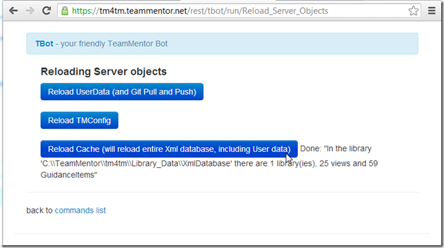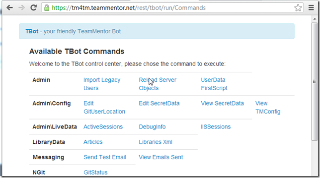 So, I opened the TBot page for the tm4tm.teammentor.net server: