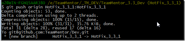 First I created _HotFix _Branch at a (freshly baked) local clone of the TeamMentor/Dev repository: