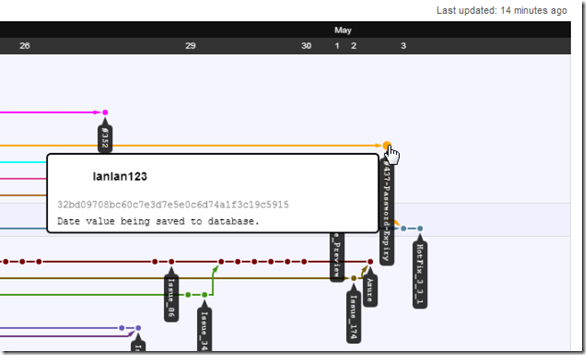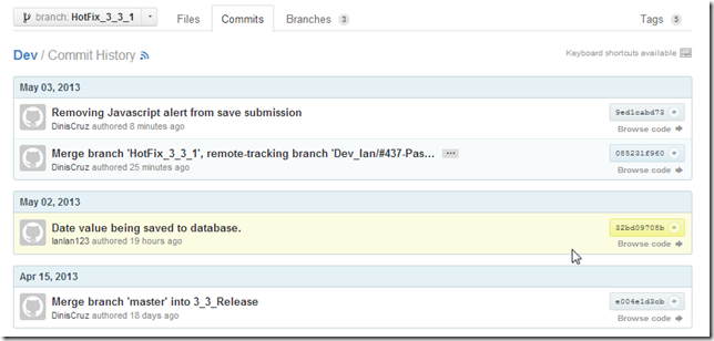 Here are the commits in the new HotFix_3_3_1 branch (note the Ian’s ‘Date value being saved to database’ branch is now there)