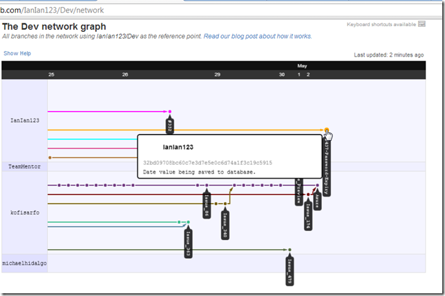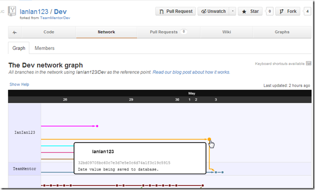 A look at GitK confirms that there was only one commit added (the Ian’s ‘Date value being saved to database’)