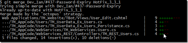 Followed by a $ git merge Dev_Ian/#437-Password-Expiry HotFix_3_3_1