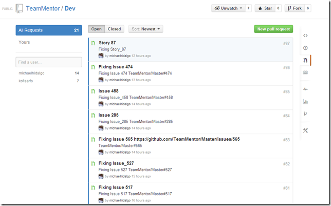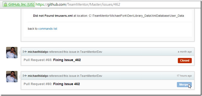 With this workflow in place, I quickly did the same workflow for the branches: Issue_384 , Issue_400 , Issue_475 and Issue_459