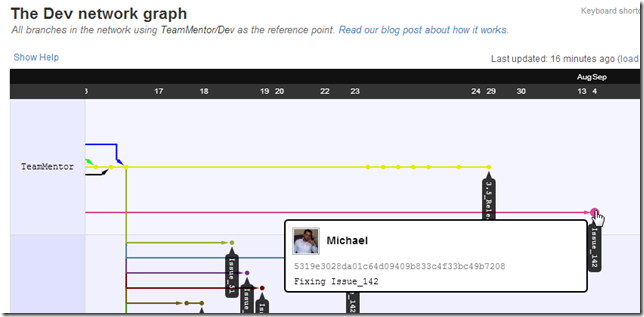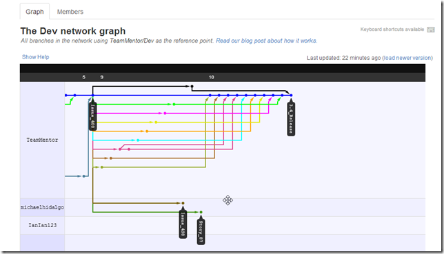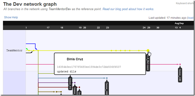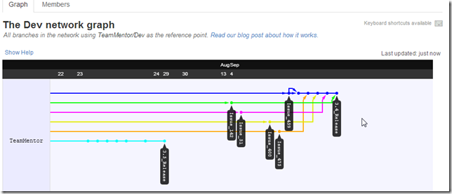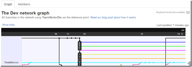 Here is the graph view, with TeamMentor/Dev master (blue line below):