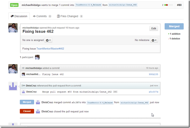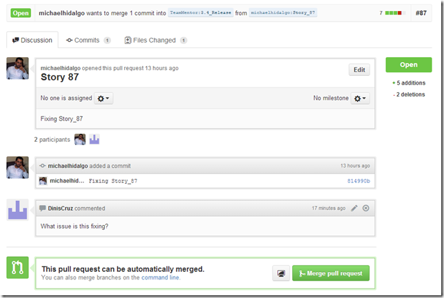 - everything done by GitGub is based on git commands, which means that all actions could had been done locally, on git clones of TeamMentor/Dev and michaelhidalgo/Dev