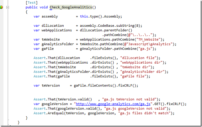 … which basically checks that the http://www.google-analytics.com/ga.js we are using is still the same one served by google (this is a good security practice since TeamMentor’s security is not dependent on Google’s server).