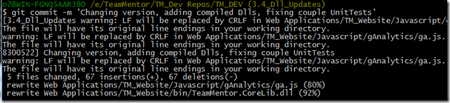 … created an commit using the command: $ git commit -m ‘Changing version, adding compiled Dlls, fixing couple UnitTests’
