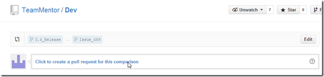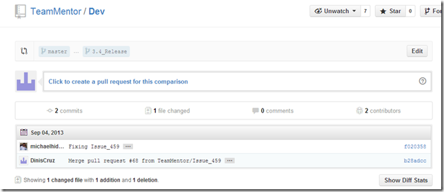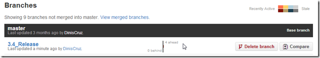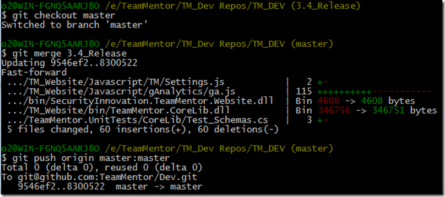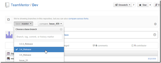 (note how no files were changed with this push, since all data was already in the 3.4_Release branch, this commit was just saying to GitHub’s version: ‘please point the master branch into the 3.4_Release commit’)