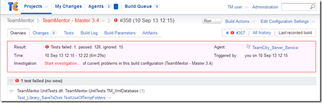 In this case after the latest commit into GitHub TeamMentor/Dev master repo, TeamCity picked up the changes and: