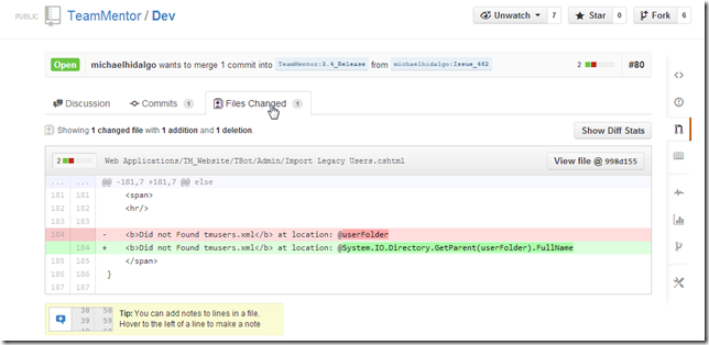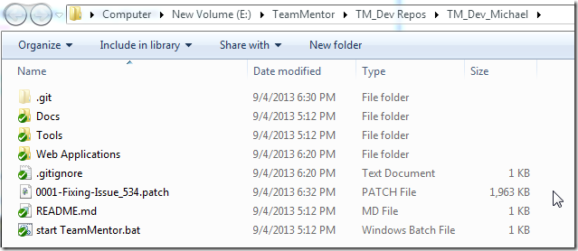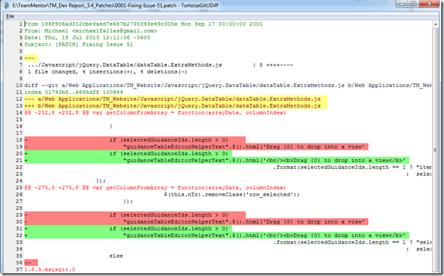 To create the patches, I grabbed a fresh clone of Michael’s dev repo (which is a fork of TeamMentor/Dev)