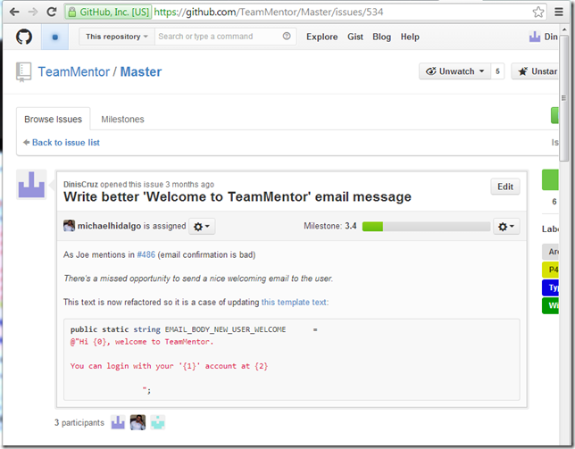 The key problem that we are going to solve, is the situation created by Michael Hidalgo’s TeamMentor fixes/commits/branches that were done against an commit (38bfcd54d8046372c0ace2409324ecc965761504)** which was originally planed to be part of the next release, but we decided that the next **3.4 Release of TeamMentor will be based on the current 3.3.3 version (with is based on the earlier commit: b97a470ffa173d67a9c74373593eea03eb7a2da4).