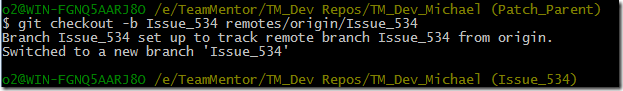 In order to create the patch, I created a local tracking branch using the command $ git checkout -b Issue_534 remotes/origin/Issue_534