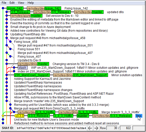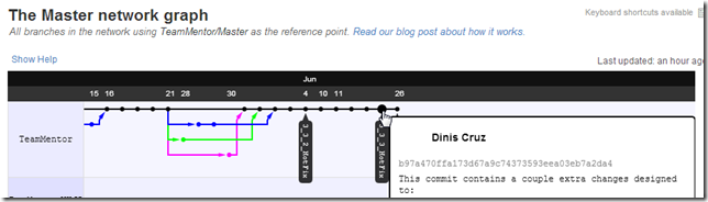 This (longish) post will cover detailed git workflows and is part of the series of blog posts that show how we use the Git Flow workflow to manage TeamMentor’s source code (you will also see practical applications of GitHub’s powerful of powerful features like Network Graphs and Pull Requests).