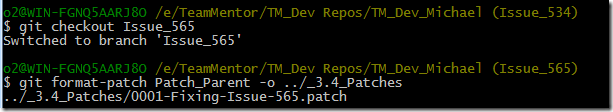 I then created a patch using $ git format-patch Patch_Parent