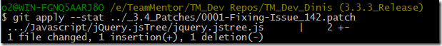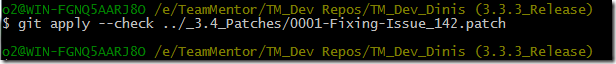 $ git apply –check ../_3.4_Patches/0001-Fixing-Issue-51.patch (check if patch can be applied)