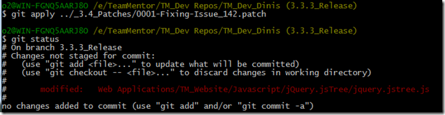 We are now going to apply the patches files (previously created), into the 3.3.3_Release branch of the current local clone of TeamMentor/Dev