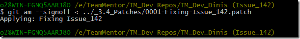 Now lets apply the patch this using the command: $ git am –signoff < ../_3.4_Patches/0001-Fixing-Issue_142.patch
