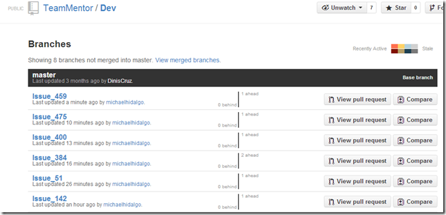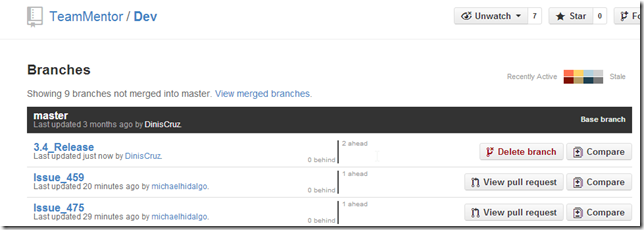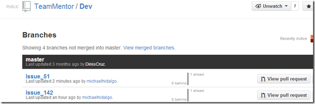 …we get the following TeamMentor/Dev ‘not merged branches’: