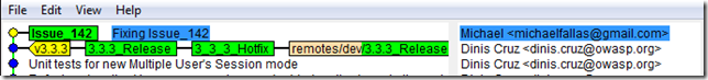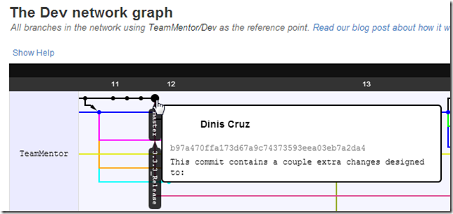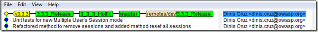 Following these commands (and without the pushes that will happen next) we can see the 3.3.3_Release tag in TeamMentor/Dev network graph
