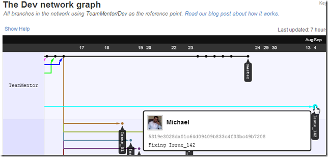 Note how in the screenshot above the Issue_142 branch is 129x commit behind master.
