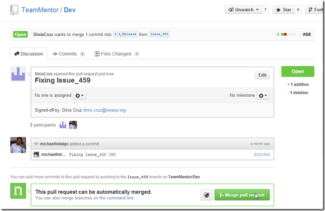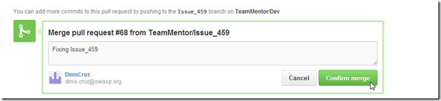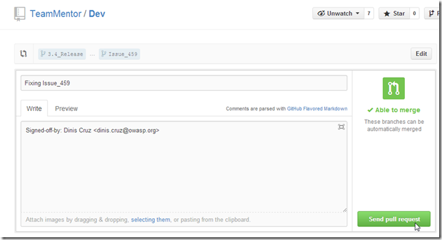 Next we push this branch into TeamMentor/Dev