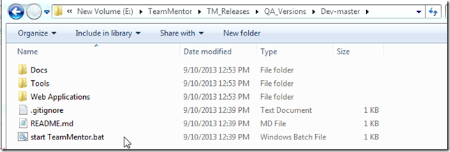 …extract the zip files into a local folder, and click on the ‘start TeamMentor.bat’ file: