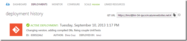 As shown in past blog posts, we also have TeamCity configured to monitor TeamMentor commits and auto-publish new builds into Azure.
