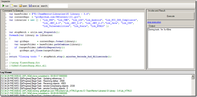 Since O2 Platform’s FluentSharp has native Git support, I was able to do create the clones using this script (note how simple it is to create a clone from a GitHub repo):