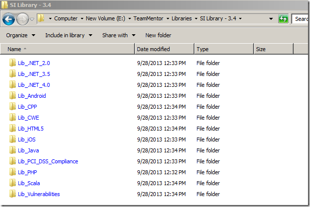 3 var libraries = new [] { "Lib_PHP", "Lib_CWE", "Lib_iOS","Lib_Android", "Lib_PCI_DSS_Complian\
