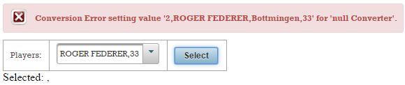 This will be rendered as expected but, if we select and submit a Player string representation, then an error will occur. This is a conversion error indicating that JSF cannot automatically convert the submitted string into the selected Player: