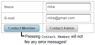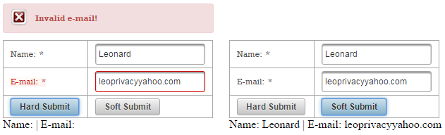 In the figure below you can see the effect produced by the two buttons (figure from the right takes advantage of <o:skipValidators />):