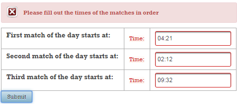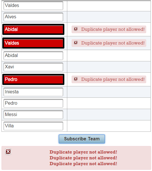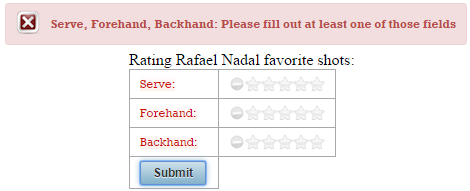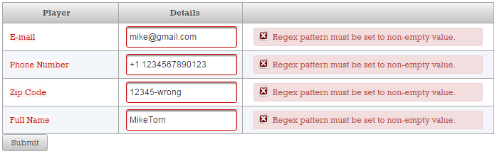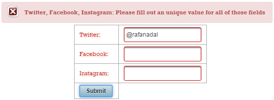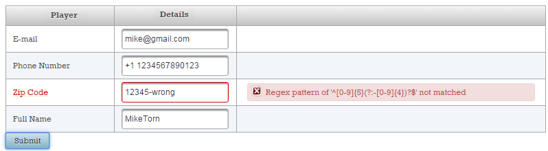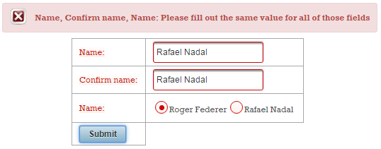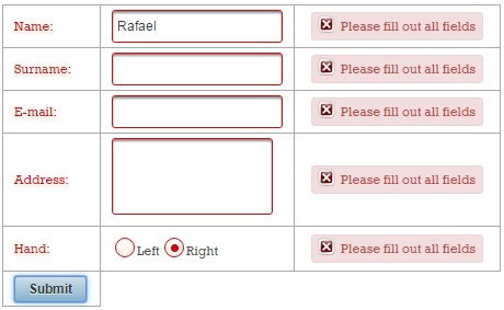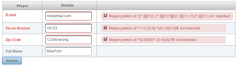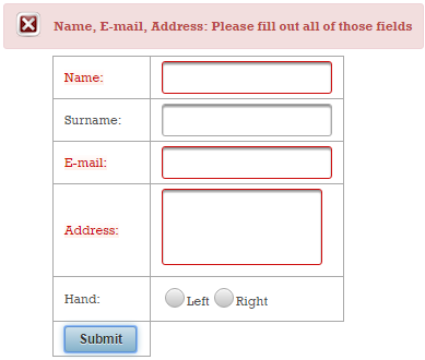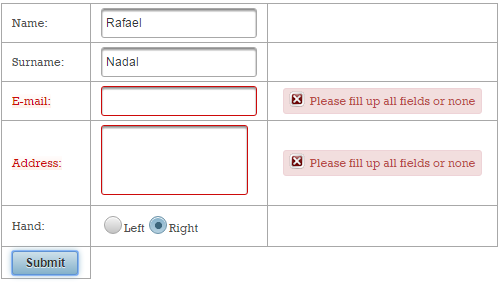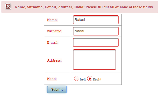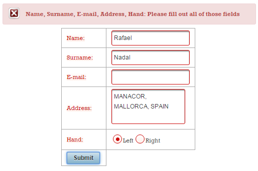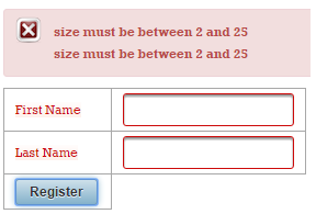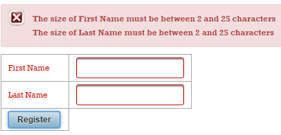 Now, if the validation fails, you will see these two messages (these are default messages, and you cannot say which belongs to name and which to surname):