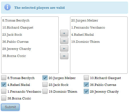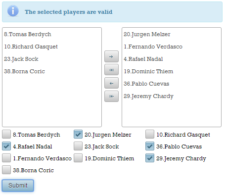 We can start from a simple form that contains two fields, name and surname. Both of these will be validated using Bean Validation annotations ‐ the messages will be displayed via <p:messages/> and <p:growl/>: