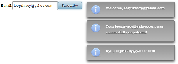 Messages.addGlobalInfo("Bye, " + email);