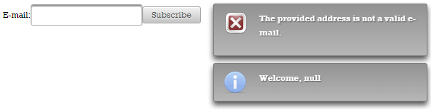 If the provided e-mail is not valid, then you will see the error messages produces by the e-mail validator. Otherwise, you will see the sequence of messages from the below figure: