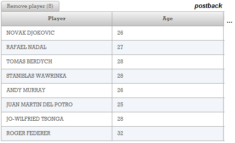 Done! If you run the application at this point then everything should work as expected. You will notice that the initial request takes some time to load, while postbacks will work very fast. This is a sign that, on postbacks, the table markup comes from cache.