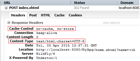 Beside these context parameters, browsers provide internal wizards, add-ons, plug-ins etc that can be used to control how the cache is done. HTML meta-tags, like CACHE-CONTROL, PRAGMA NO-CACHE, EXPIRES and LAST-MODIFIED are also useful. The JSF resource handler sets the EXPIRES and LAST-MODIFIED, and usually all we have to set is the CACHE-CONTROL.