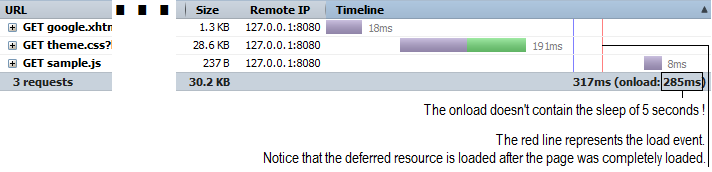 So, you can use the CDNResourceHandler to defer resources loaded from CDN repositories. The complete application is named, CDNResourceHandlerAndDeferredScript.